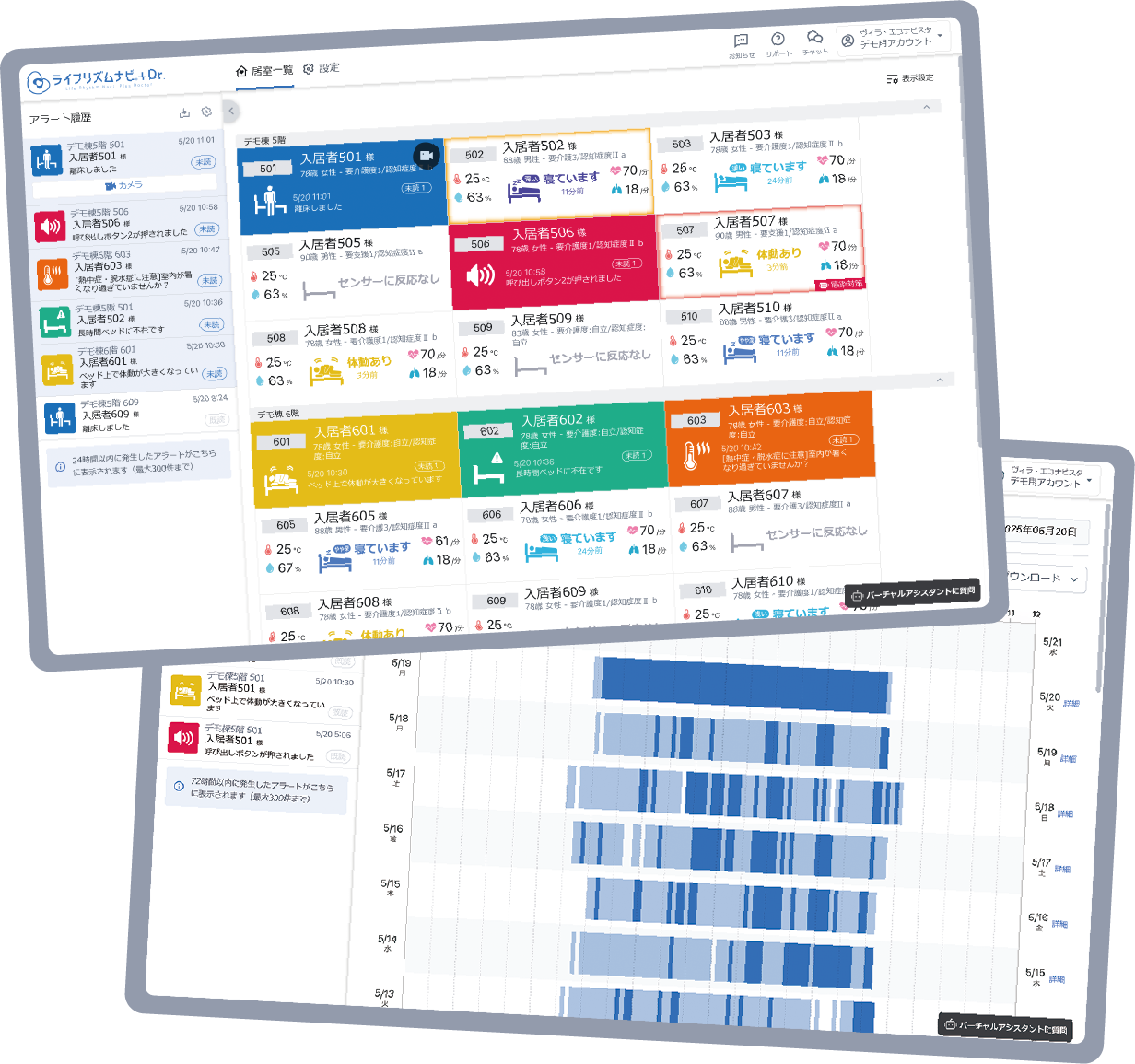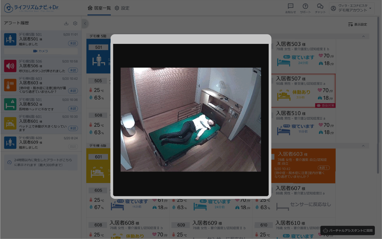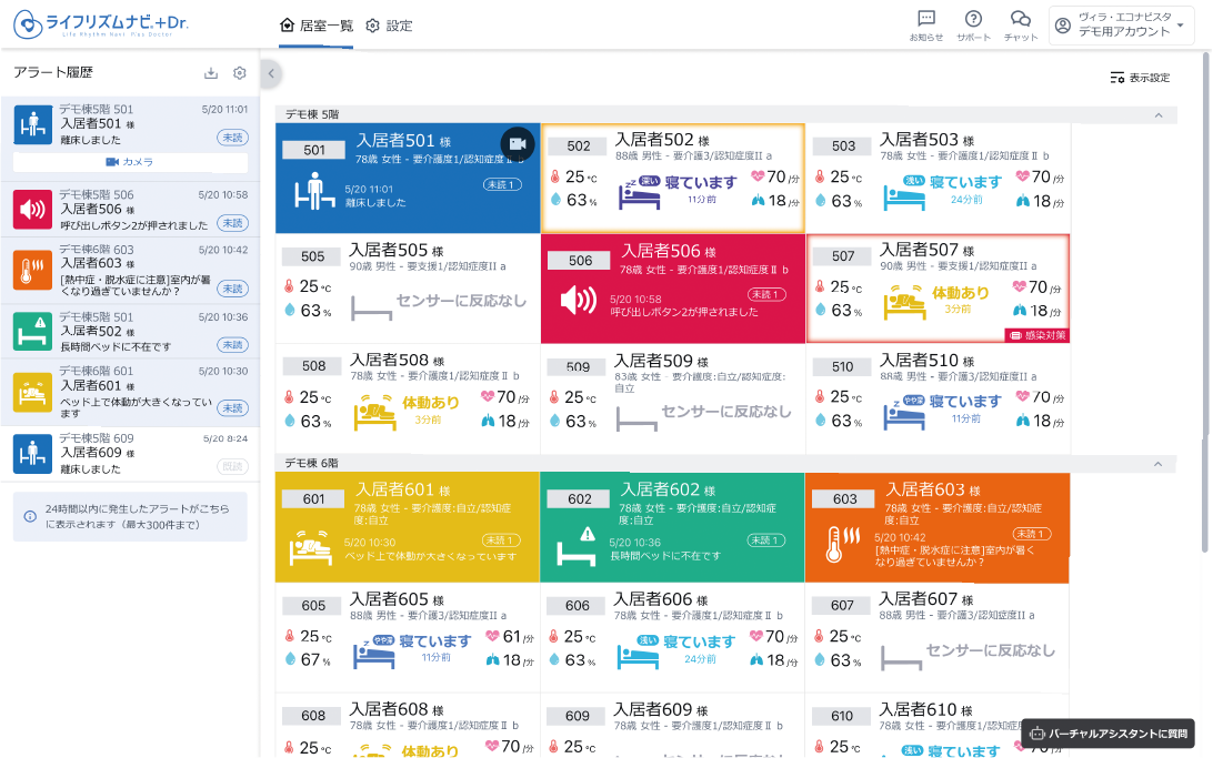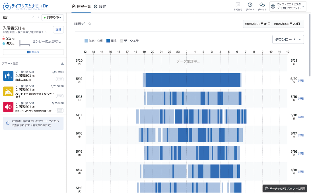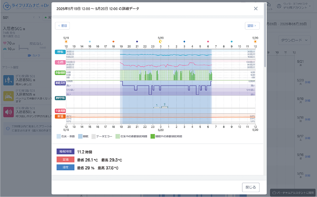 ご入居者の過去の睡眠と直近のアラートを一覧で確認できます。